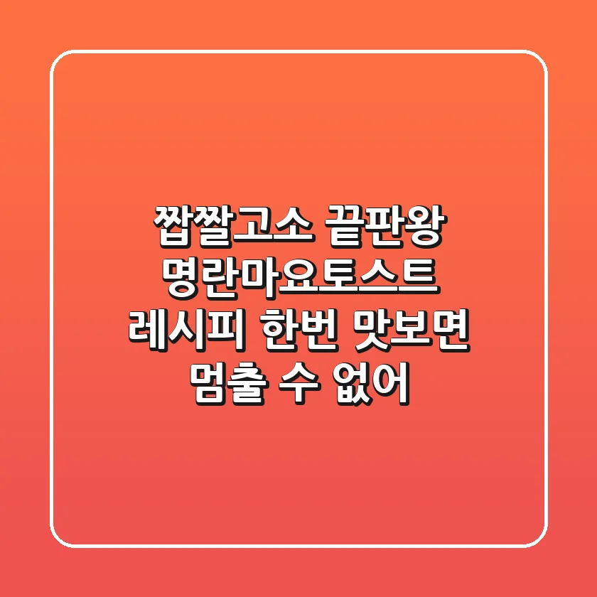 여러분, 안녕하세요! 혹시 “단짠단짠”은 들어봤어도, “짭짤고소”의 매력에 푹 빠져본 적 있으신가요? 솔직히 저는 얼마 전까지만 해도 몰랐어요. 근데, 이 명란마요토스트 한번 맛보고 나서는 완전히 생각이 바뀌었답니다. 지금부터 제가 완전 반해버린, 짭짤하고 고소한 명란마요토스트 레시피를 여러분께 낱낱이 공개할게요! 정말 간단한데, 맛은 상상 초월이라는 거! 기대해도 좋아요!